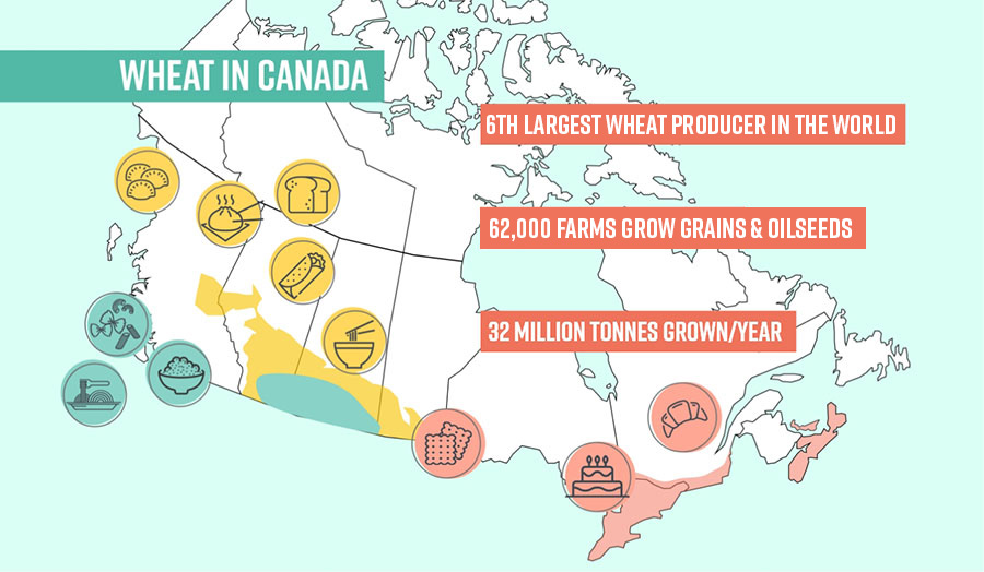 Canadian wheat is sought after here at home and around the world for its high protein, quality and versatility. Canada produces enough wheat to meet domestic demands and exports the excess to over 80 countries.